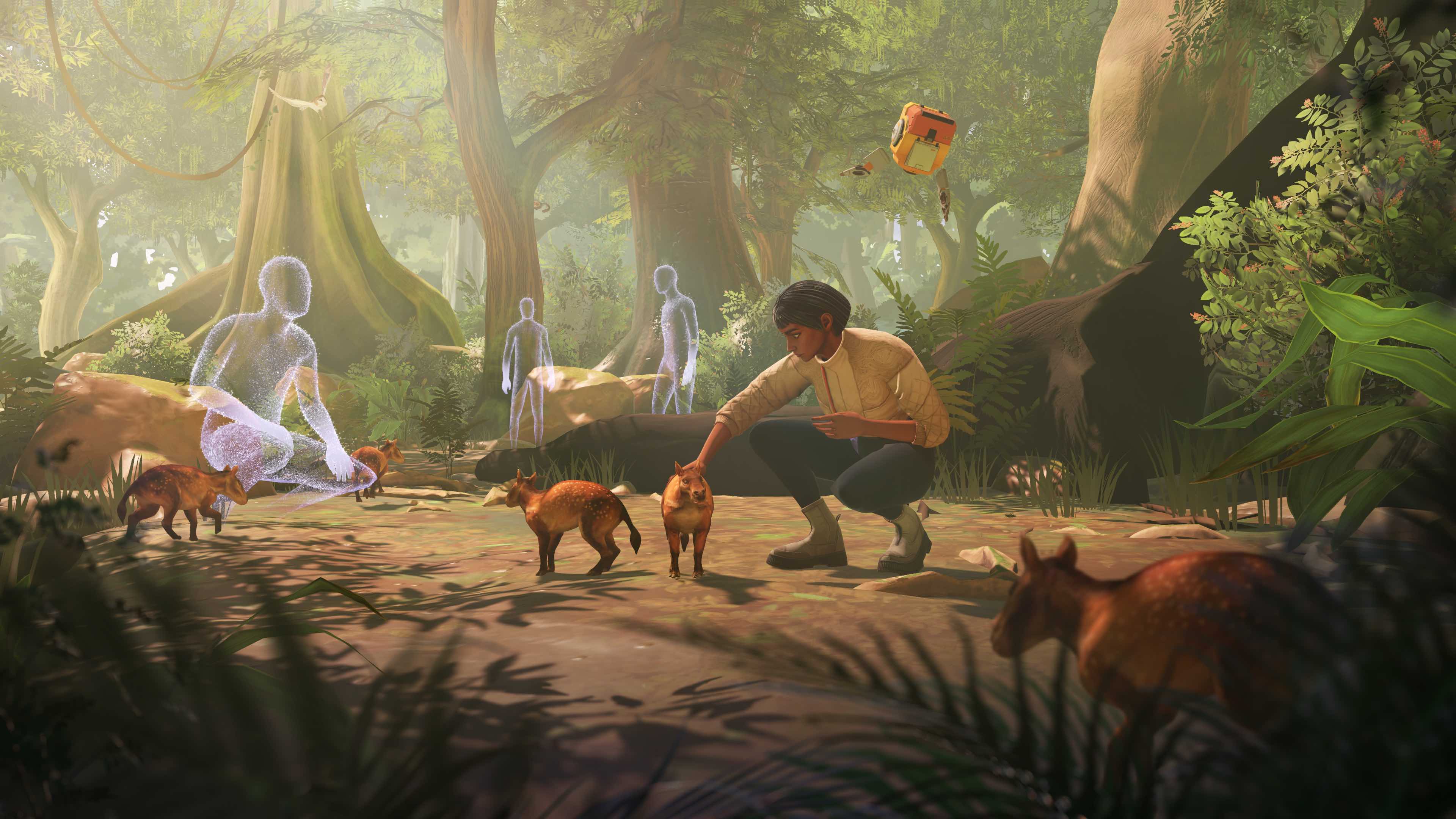 元宇宙云展厅在45分钟的体验中引领观众穿越35亿年的时光隧道,从太古宙的生命初现到寒武纪的动物生命起源,再到石炭纪的森林奇观、白垩纪的巨型恐龙时代,直至人类生命的崛起,让观众亲历各主要地质时期的壮丽景观和生命形态。体验中特别融入了中国元素,重现了寒武纪时期中国云南澄江及其周边地区的史前风貌,让观众仿佛置身于史前中国的浅海之中,亲眼见证并探索这片古老大地的地质与生命奇观。
