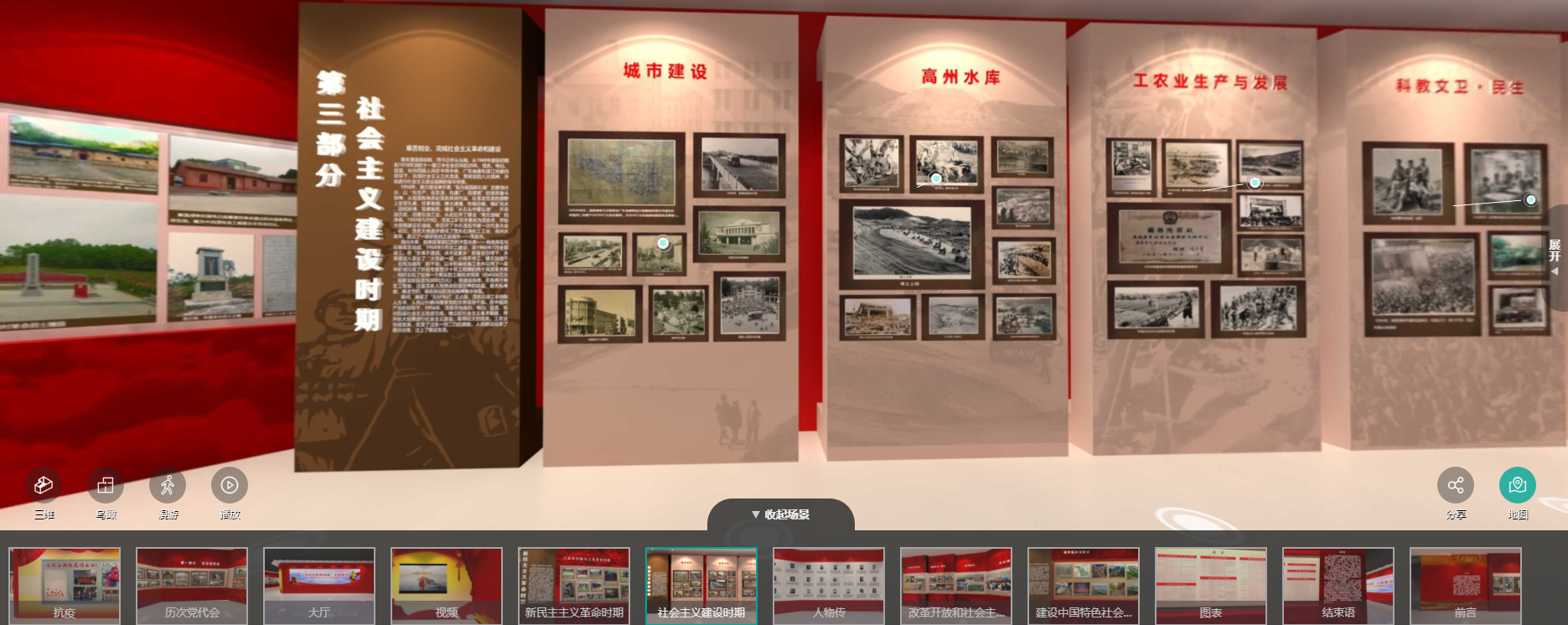 多功能党建文化展厅展馆如何设计?党建文化展厅展馆是每个地方党史发展脉络历史博物馆,它详细记载了地区历来党建工作中重要的文献、文物、人物等,是大众学习党的先进思想、继承党的优良传统的重要平台。以往都是线下展厅展馆的搭建,但今年由于疫情的反复,人流不能聚集,在加上数字化的加快,很多人都选择线上布展,没有地域限制,而且呈现方式更加多样化,本期就跟云展科技一起来看看多功能党建文化展厅展馆是如何设计的?