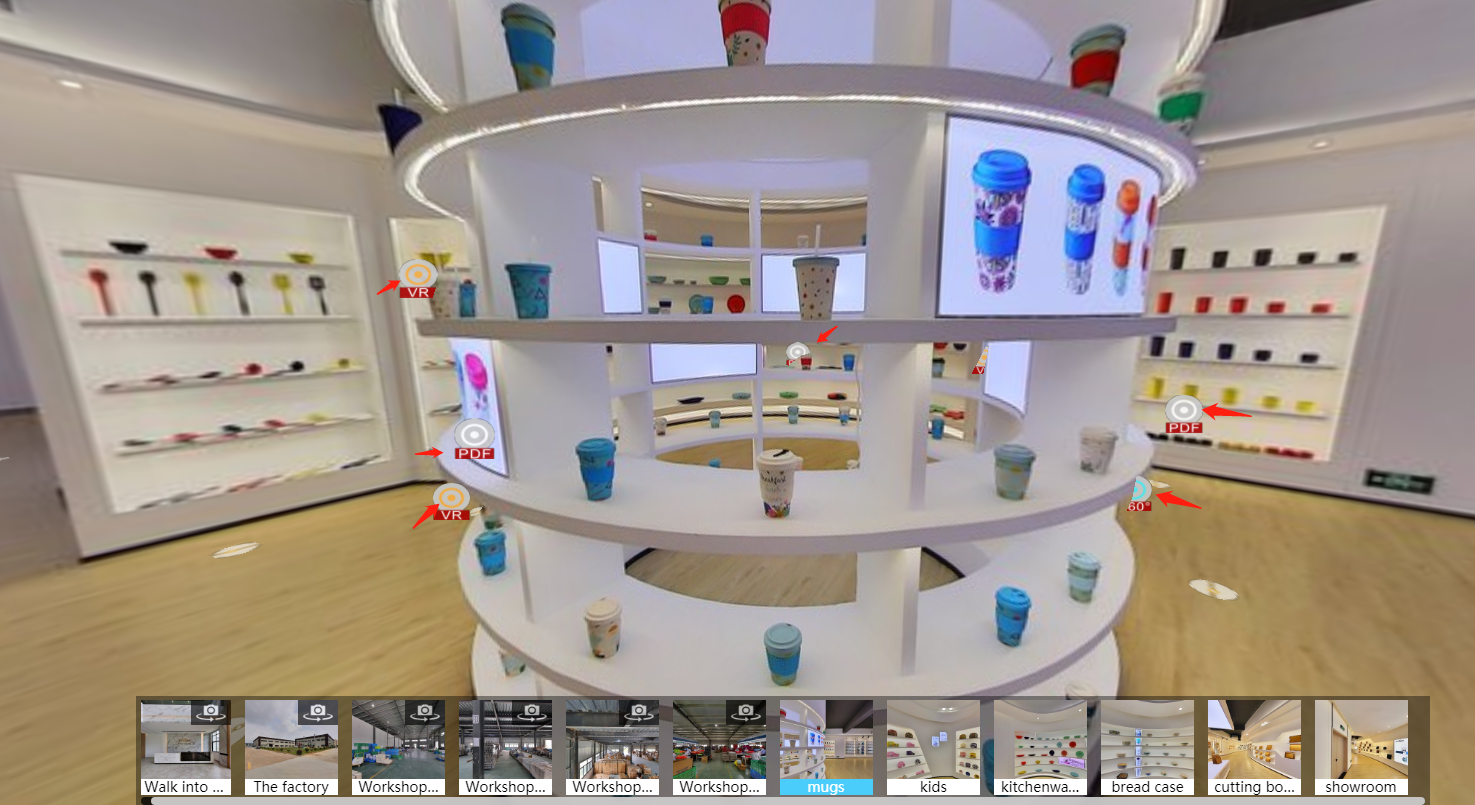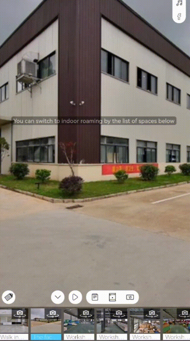 这种如临现场的方式,能够让客户线上参观的时候,自主探索工厂情况,720度无盲点展示工厂,让客户在观看时提高对工厂的信任度。