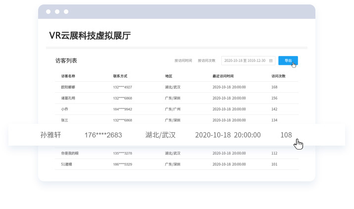 能独立提供每个展厅访问用户的账号、用户名、来源地区,为企业提供核心营销线索